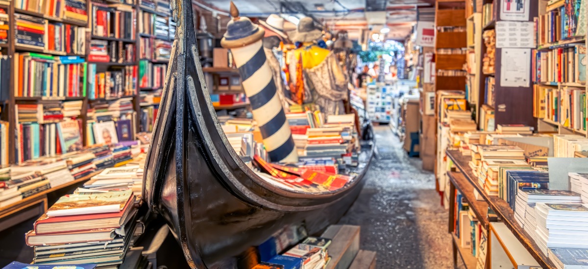 A Libreria Acqua Alta Velence egyik legkülönlegesebb könyvesboltja, amelyet helyiek és turisták egyaránt látogatnak. A "magas víz könyvtára" elnevezés a Velencét gyakran sújtó áradásokra utal. Ilyenkor a könyveket régi gondolákban, fürdőkádakban és más vízálló tárolókban helyezték el. A boltot az egyedi dekoráció is különlegessé teszi. Például a hátsó udvarban egy könyvekből készült lépcső vezet a csatornára nyíló kilátóponthoz. A boltban új és használt könyveket is megvásárolhatsz több nyelven, így igazi kincsekre lelhetsz.
